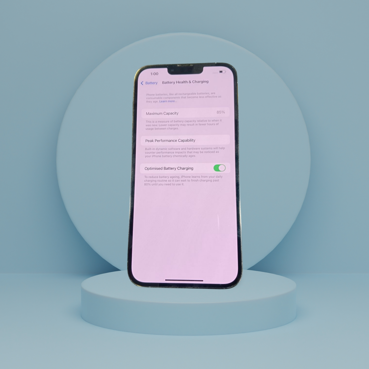 Battery Health: – 85%
