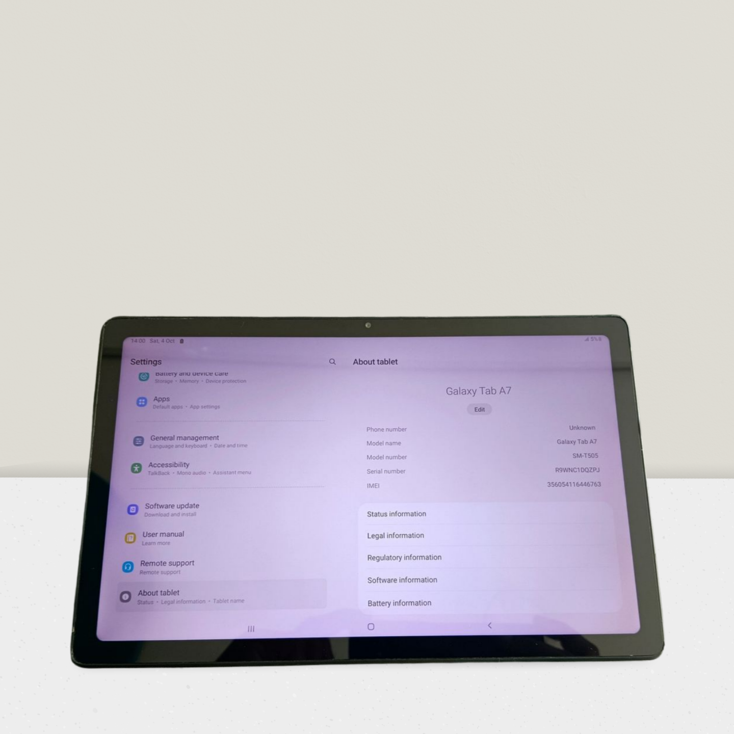 Model :- Galaxy Tab A7